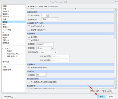 在”Creo Parametric 选项“对话框中单击”草绘器“。