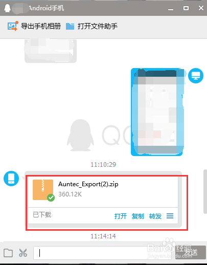 第二步:在电脑上登岸qq,件文件传到我的电脑,然后将文件下载下来,存在电脑里,进行解压。