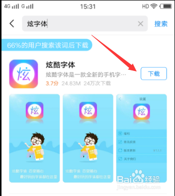 输入后点击搜刮按钮,点击第一个炫酷字体,然后点击下方下载安装图标。如许,炫酷字体就被安装到手机傍边了。