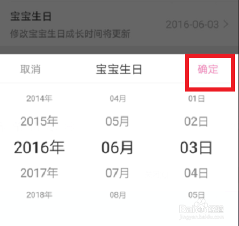 这页自改性征,尔后再滑动列数,滑到对应的辰日,再点‘确定’粉字,会退回办理页。