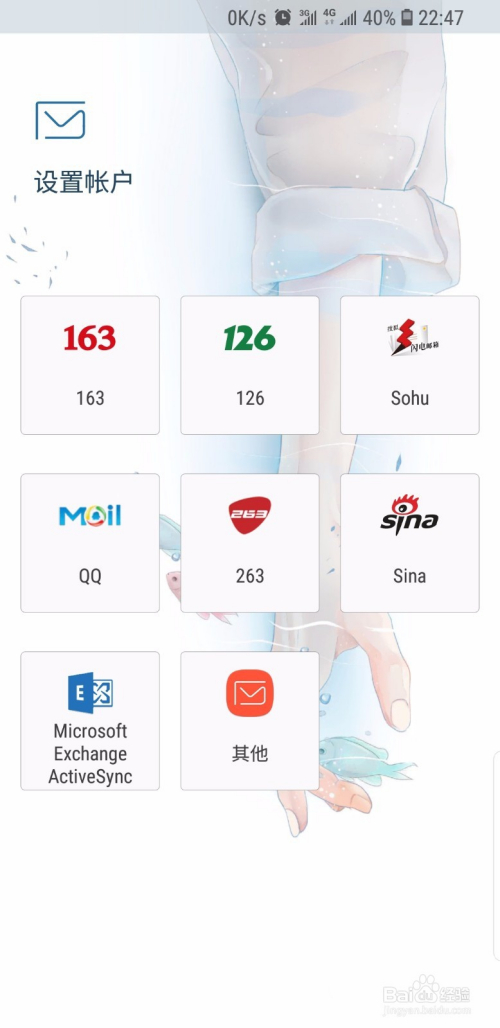 首先打开电子邮件应用,并选择账户登岸体例为QQ。