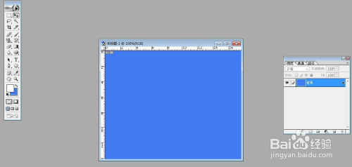 3、设置布景色为天蓝色,按住Ctrl+Delete键填充布景色;