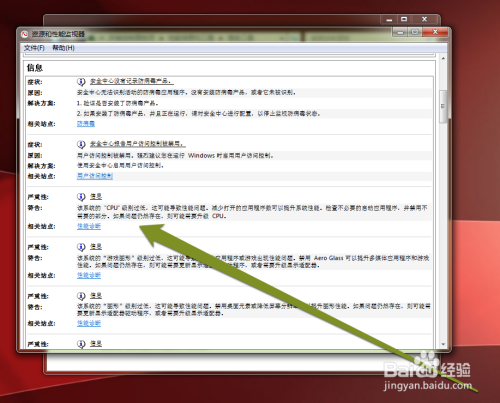 例如陈述中,提醒系统的CPU机能略低。需要封闭一些不需要的法式,而做出的优化建议。