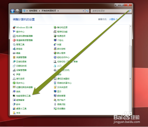 打开台式机的节制面板,选择机能和信息东西图标。