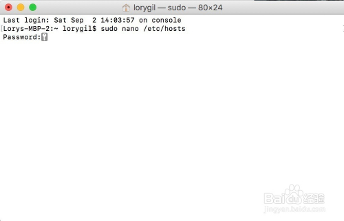 二、在终端窗口中,您需要输入号令才能打开Nano文本编纂器。你也需要你的办理员密码。