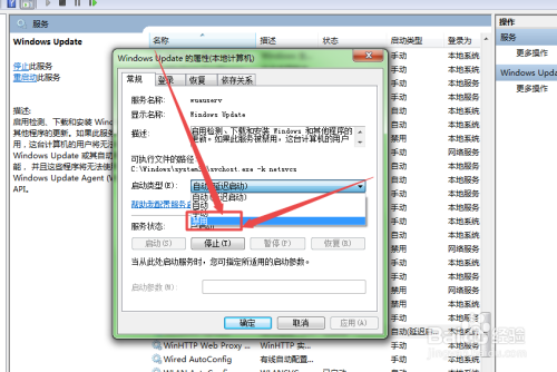 双击它,然后在弹出的页面中将启动类型选择为禁用,然后点击下面的遏制 按钮,来遏制办事,遏制之后,点击 确定 ,然后封闭当前页面。