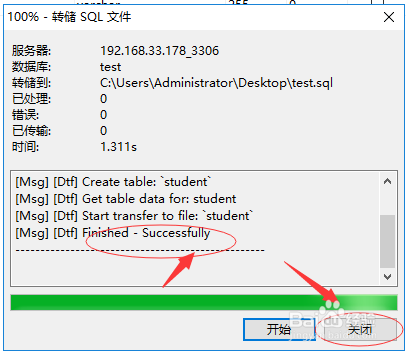 点击起头后,进行SQL文件的当地磁盘转储,如下图所示: