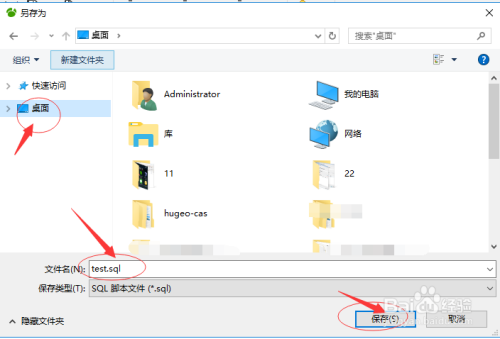 弹出SQL文件的另存位置,如下图所示: