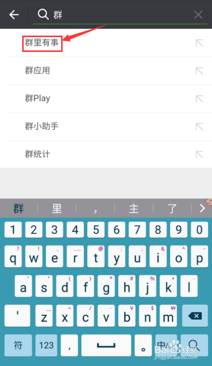 3.在搜刮栏中搜刮小法式“群里有事”
