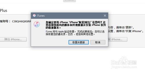 点击【恢复iPhone..】按钮,iTunes会弹出答复提醒