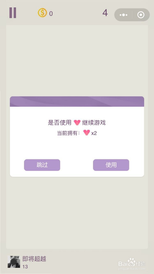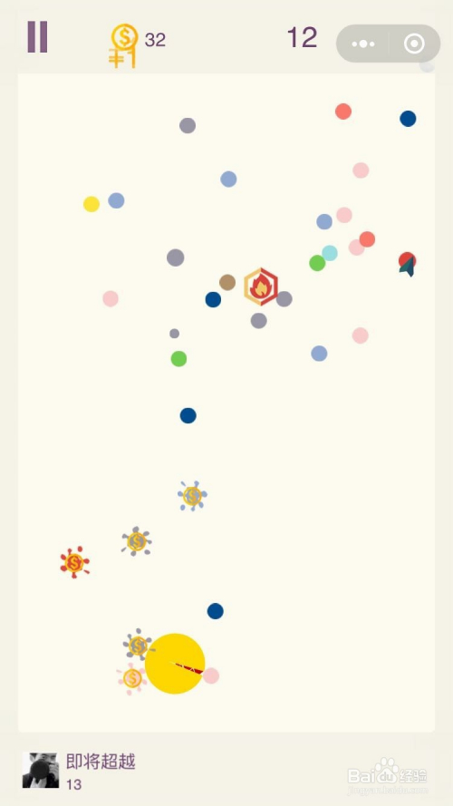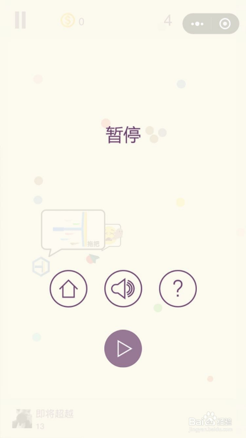 远离豆豆和其他的微信小法式一样,拥有暂停功能,我们可以点击左上角的暂停按钮,画面就会暂停了,豆豆和我们的箭头城市遏制不动,等我们从头起头。