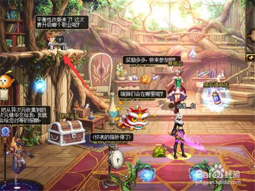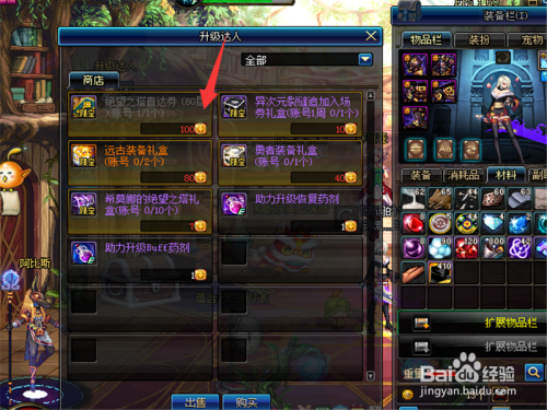 不管你在哪,可以直接返回脚色选择,然后进入来到赛丽亚的房间,在这里的左上角有一个进级达人的商铺。