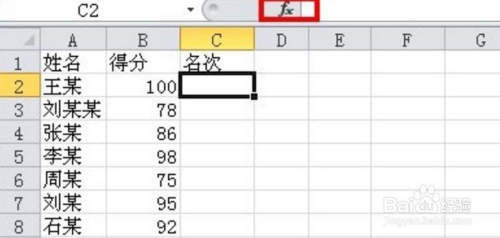 不管如何小编就先举一科的得分名次,选择第一个单位个可以直接=RANK函数,可以点击上面的函数图标,不谙练的话这个是有提醒的;
