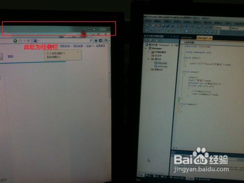 显示结果请参阅图二、图三,此时有且仅有一台显示器具有使命栏(我的使命栏置于顶部)