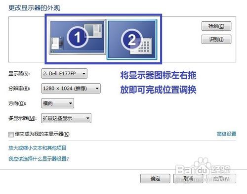 若是需要更改显示器的摆放位置,例如摆布更调。请参阅下图