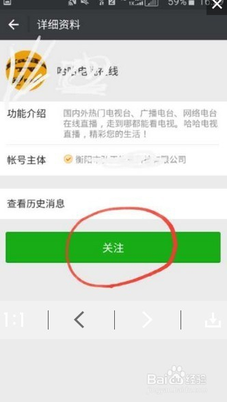 在顶部搜刮栏输入公家平台微旌旗灯号或公家号名称哈哈电视在线,点击搜刮标记后下方显示出方针公家号,点击它