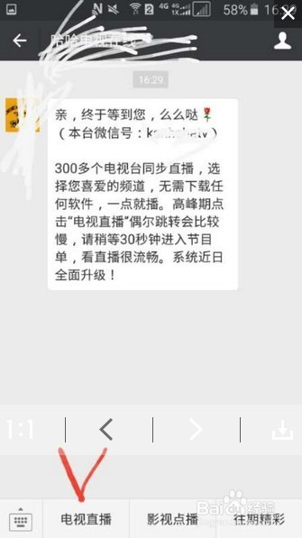 存眷后进入公家号本家儿页面,点击底部第一个菜单“电视直播”