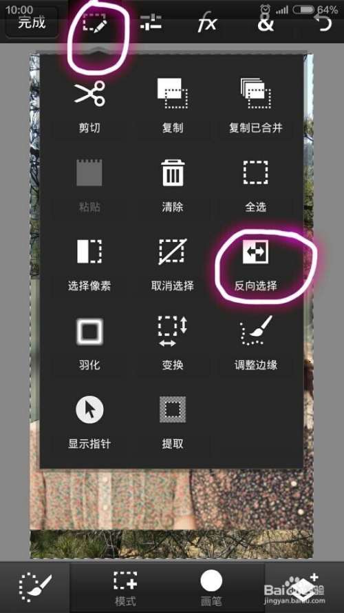 点上方最左侧东西,选择“反标的目的选择”,成果如图。此刻虚线选定的是除人像以外的其它区域。
