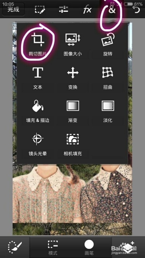 最后,可以裁剪一下照片到你想要的结果。选择上方右侧的东西,里面选择“裁剪”。