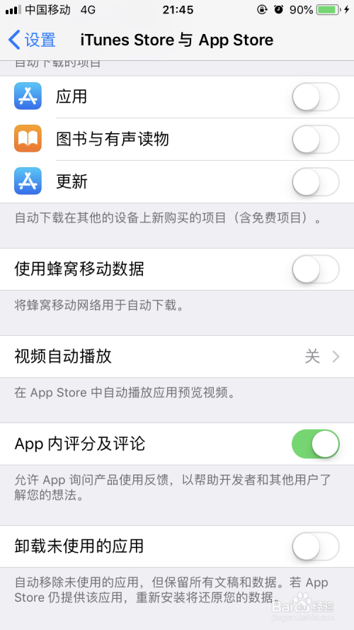 下滑菜单,我们会看到有一个app内评分及评论按钮,默认是打开的。此功能许可app扣问产物反馈。