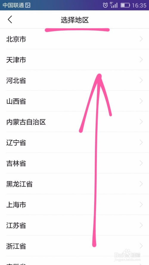 在手机屏幕上呈现的选择地域中,我们经由过程手指在手机屏幕上标的目的上滑动查找我们地点地域;