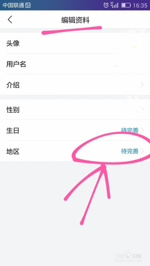 在编纂资料页面中,我们可以或许看到小我信息环境,我们可以在这里完美小我资料,如设置地域,我们就点击地域栏;