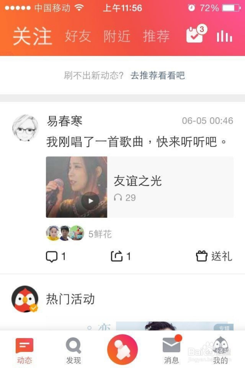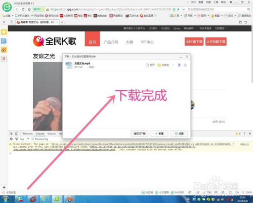 打开全平易近K歌后,我们找到我们之前颁发的歌曲。如下图所示,小编要把《友情之光》这首歌曲下载到电脑上。