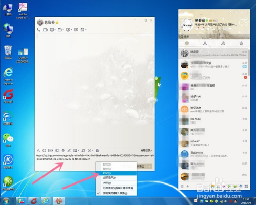这个时辰我们要在电脑上登录并打开我们的QQ界面,肆意选择一个QQ老友,不管哪个老友都行,最好是越熟的越好,省得别人误会你发了什么病毒链接。然后你再打开聊天对话框,在输入文字的处所单击右键按粘贴,这个时辰便会呈现一个链接,这个链接就是方才在全平易近K歌里分享复制的阿谁链接。