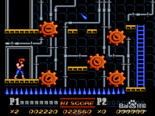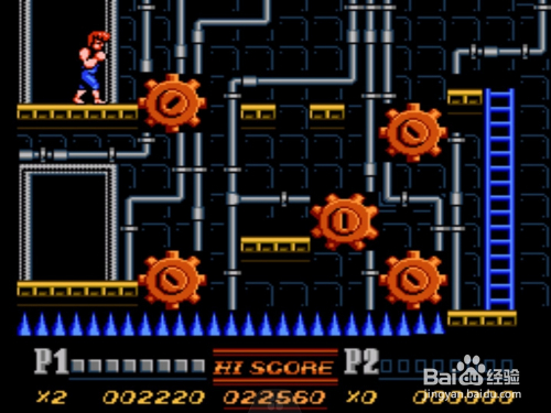 之后会碰到传送带,必需跳到传送带上再跳到右方的房间。注重不克不及失落到下面的尖刺上。