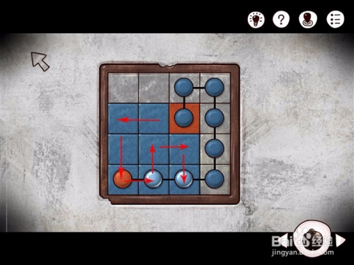 10、点击另一个门,需要破解密码锁。方式是将链条调节到图示位置,按图示路径拖动就可以完当作。