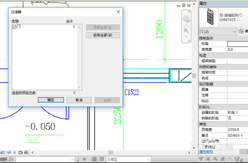 选择后,在右下角漏斗外形中,可以看到在选中了2个不异图元的门