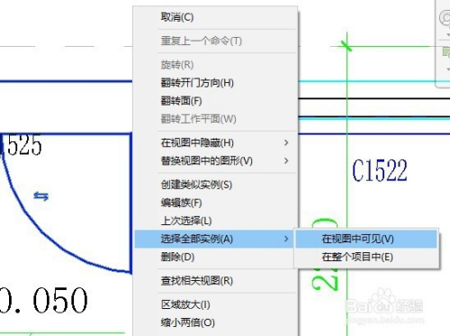 在弹出列表,选择全数实例——在视图中可见。如许会将视图中,全数可见的门,全数选中
