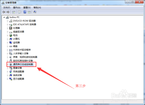 第三步:在“设备办理器”的设置面板中,点击打开“通用串行总线节制器”。