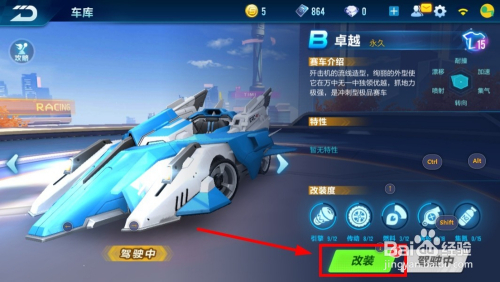 在车库中选择好你要改装的赛车,小编以本身的车库赛车“卓越”为例
