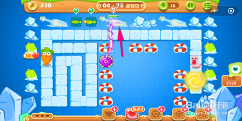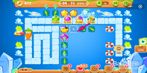 进犯完第二波怪物今后,则有足够的萝卜将魔法塔升到三级。升到三级今后进犯箭头指示位置的道具。