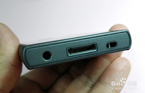 在播放器机身的底部,从左到右依次为3.5mm耳机插孔、充电/传输插孔、挂绳孔。可以看到用于充电和传歌的插孔分歧于通俗的USB或者HDMI的,是索尼独有的,所以要保留好随机带的数据线。