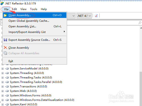 打开菜单栏中的“File”->“Open Assembly...”,如下图所示: