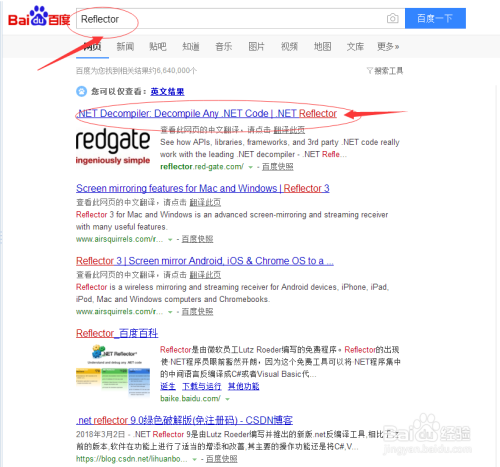 打开百度首页,搜刮“Reflector”,如下图所示: