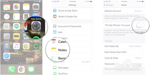 在我的iPhone帐户上,您可以将Notes存储在设备上。以下是如何打开或封闭它的方式。