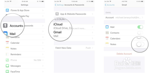 4、点击Notes旁边的开关。它可能不合用于您想要利用的每个帐户。