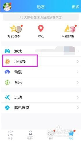 在动态页面,我们可以看到这里有个叫“小视频”的功能。