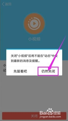 点击【仍然封闭】。封闭后,页面上会呈现“当作功封闭小视频”的提醒。具体如图所示。