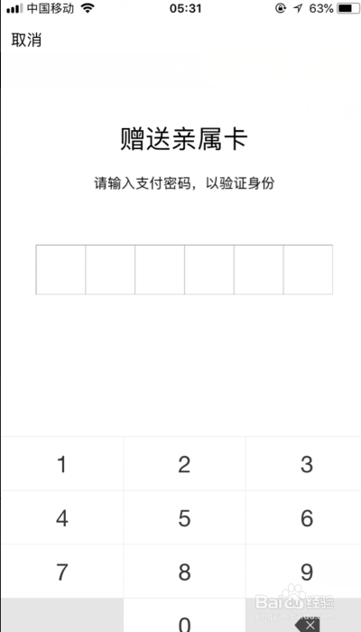 点击亲属卡后,弹出下面的页面,点击赠予亲属卡。