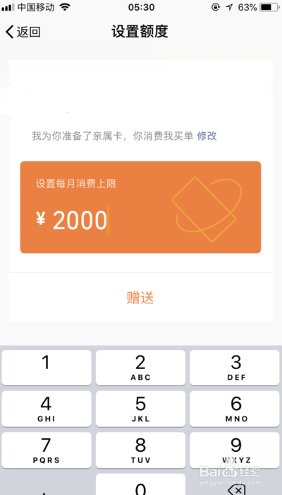然后就会呈现下面的页面,在这里可以甚至亲属卡每月的消费上线,本身可以进行设置一下。