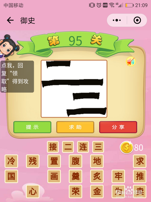 御史95关谜底:看看图片上文字的特点是毗连在了一路,谜底就是【连续不断】。