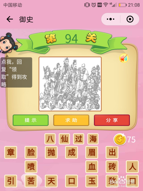 御史94关谜底:细心看是神化故事里的八仙,这八仙在干什么呢?在过海,过海时各自会用本身的神通,这即是当作语【八仙过海】。