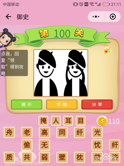 御史100关谜底:图片上不异的两小我,这两小我除了动作上有所区别以外,其他没有任何区别,那这小我的动作就是猜出谜底的关头,一手捂住耳朵,一首盖住眼睛,就是当作语【掩人耳目】。