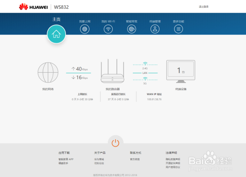 4. 步调4后,进入到路由器设置的本家儿页,如下图所示,显示的是当前链接的设备数目和相关信息。