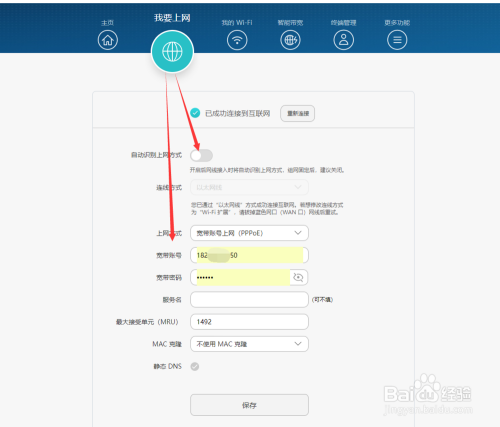 6. 选择【我要上网】,进入到下图页面,设置上网体例、宽带账号和密码