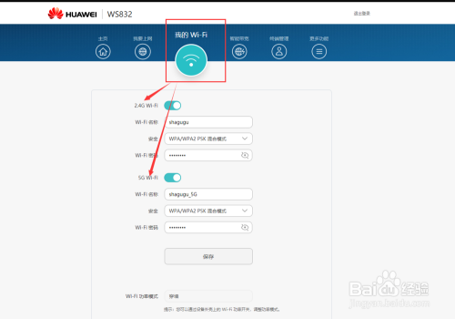 5. 选择【我的wifi】,设置2.4G或者5G wifi账户和密码,如下图所示。